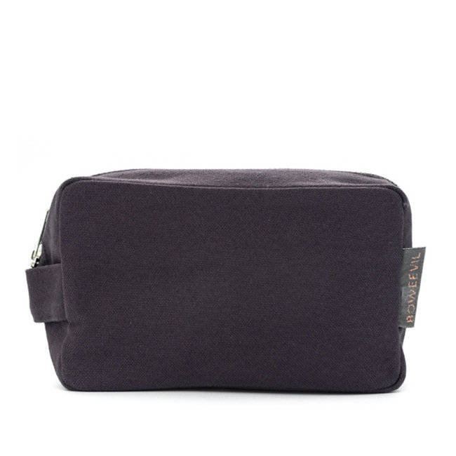 Der Kulturbeutel besteht aus robustem Bio-Baumwoll-Canvas (340g/m²) in der Farbe Anthrazit. Der Reißverschluss ist von YKK und in der gleichen Farbe Anthrazit. Und natürlich mit dem GOTS-Logo.