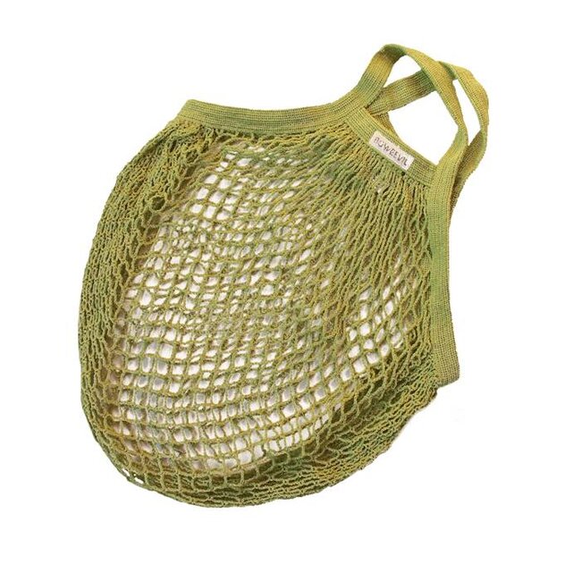 Diese Einkaufsnetz ist lindgrün gefärbt und hat kurze Henkel.
