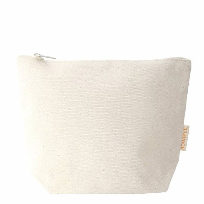 The toiletry bag is made of sturdy organic cotton canvas (480g/m²), the same quality as the beach bag. The zipper is made of YKK and is natural white.