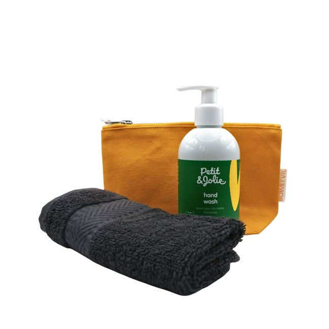 De handenwasset is voor thuis of voor onderweg. De set bestaat uit: